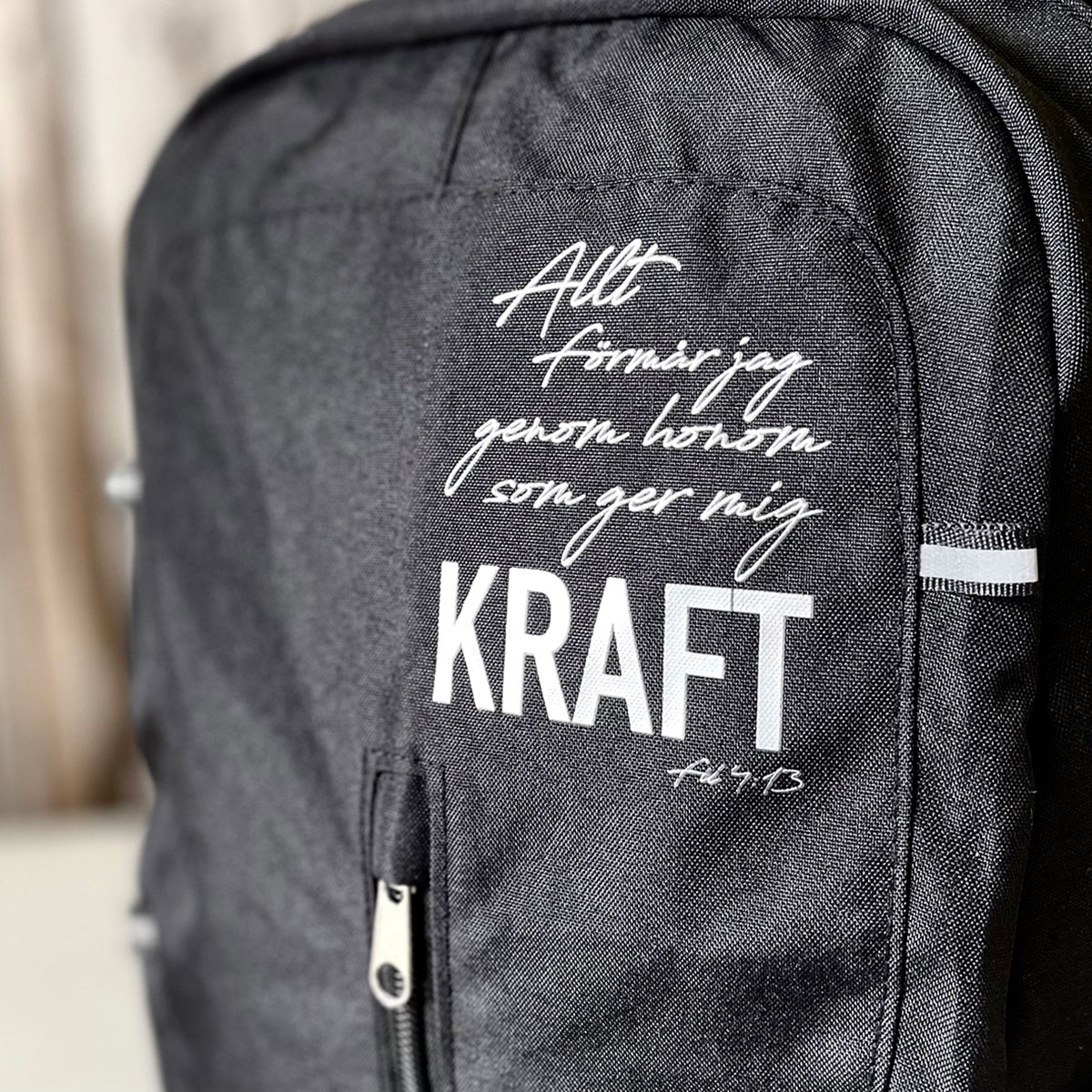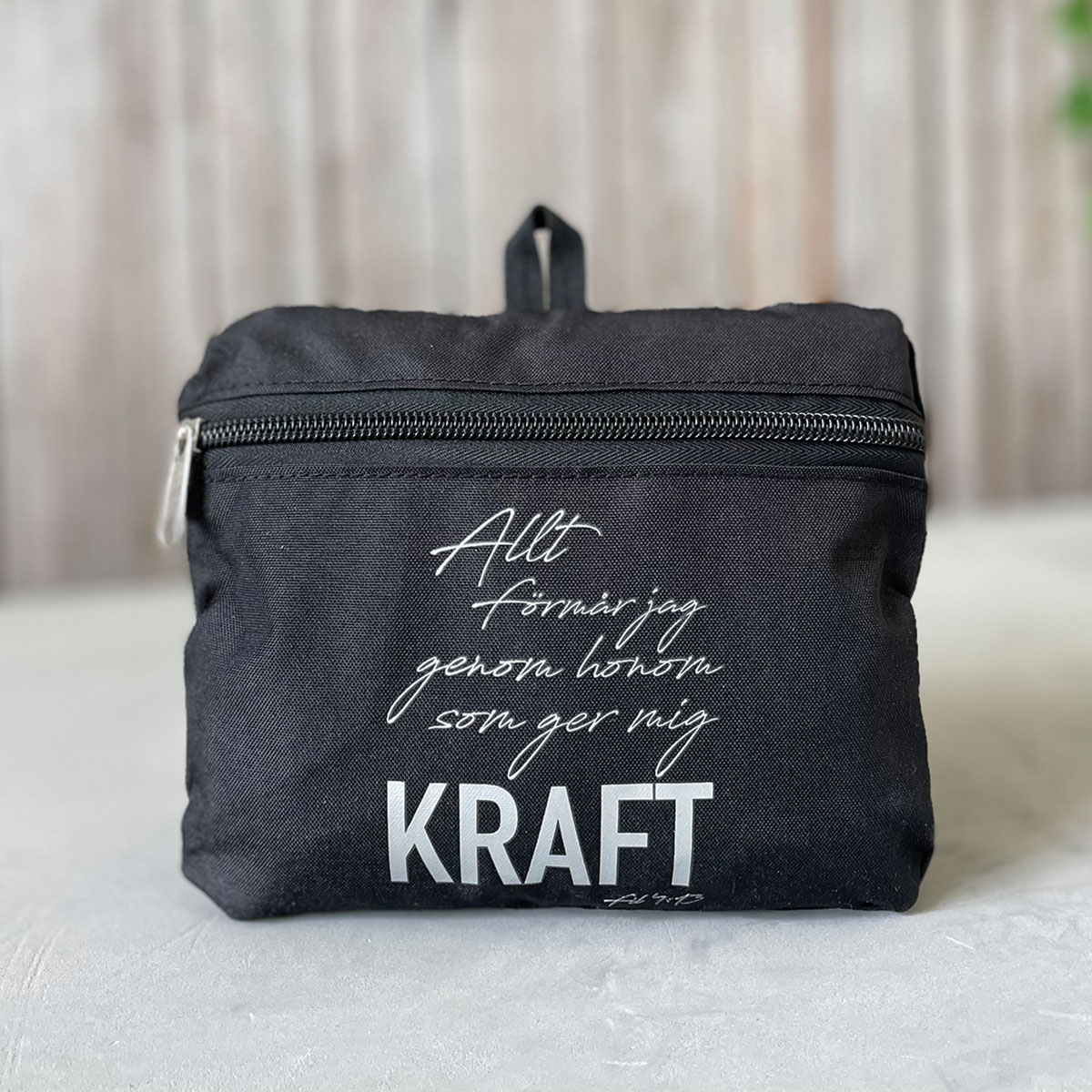 Text: Allt förmår jag genom honom som ger mig KRAFT. /Fil 4:13